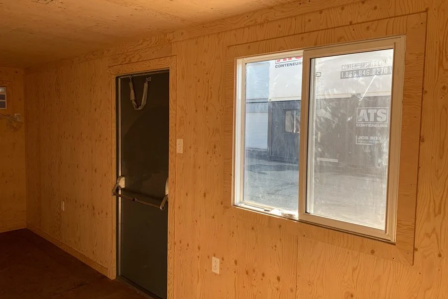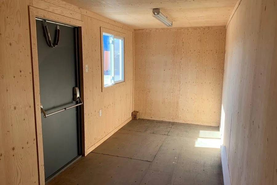 The 20 foot Econo Box is multipurpose and an economical mobile office container. It offers a simple mobile office solution that is cost-effective and easy to transport from site to site. The ground-level access is an added convenience for job sites and they can easily be stacked in constrained spaces. This mobile office is built using a used ISO 20’ container equipped with several features including urethane insulation, interior walls finished in plywood, 1 large PVC window, an industrial steel man door and a complete electrical system with heat and air conditioning.